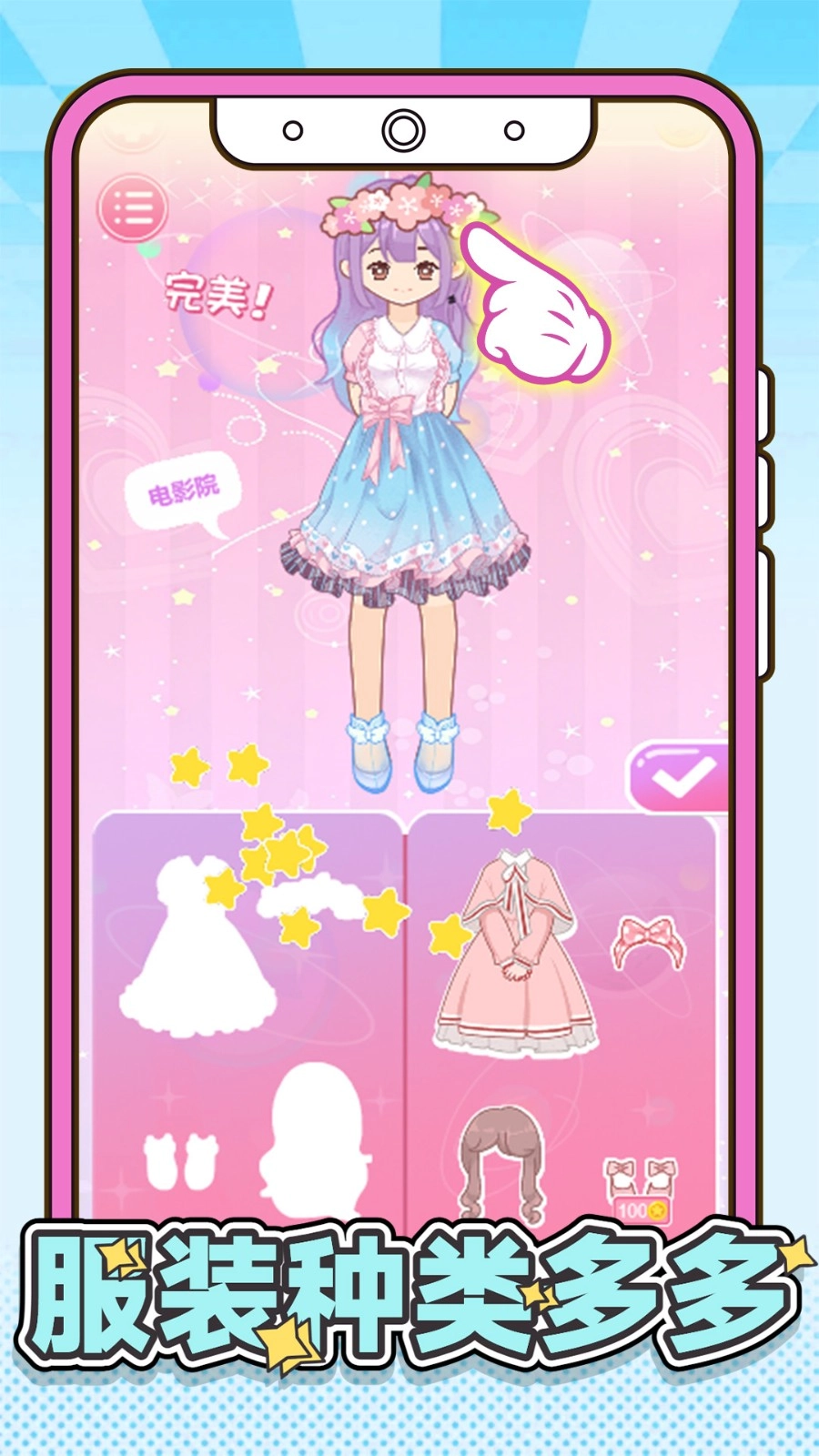 玩家可以通过完成任务解锁新服装,还能为服装搭配各类饰品,以此进一步提高角色的外观评分。