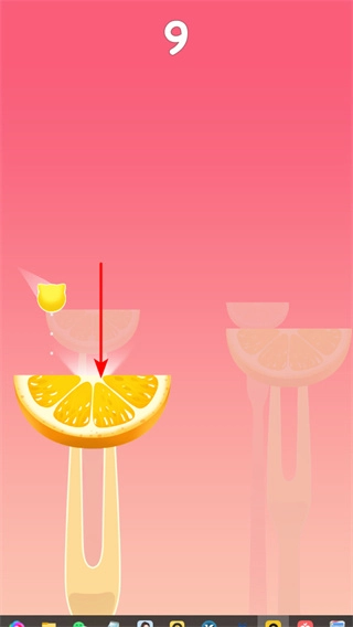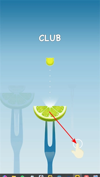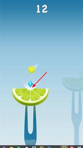 点击屏幕上的指定区域,让下落的黄色小块等物体击中青柠、橙子这类水果,以此触发游戏的得分机制。