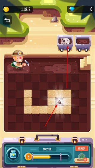 游戏设有挖掘环节,玩家需要操控矿工角色,在特定的挖掘区域利用工具进行挖掘作业。挖掘过程中会消耗角色的体力值,而挖掘出的各类物品可以被收集起来,这些物品能够用于博物馆的展品布置等用途。