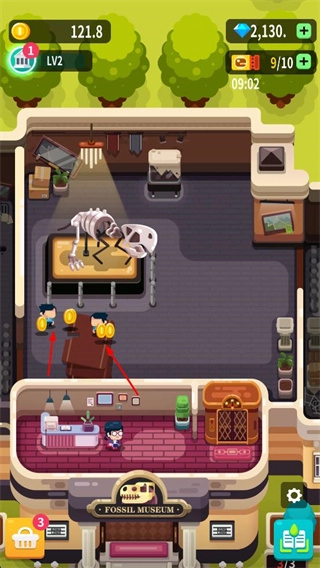 博物馆建成后,游客便会前来参观,在他们的参观过程中会产生金币收益。玩家可以通过优化展区等手段,吸引更多游客,从而获取更多的金币。