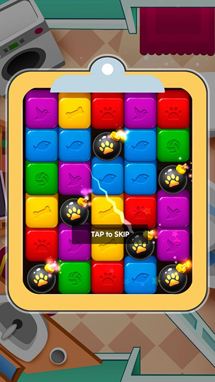 当隐藏的动物精灵被消除并唤醒后,它们会主动协助玩家收集游戏场景里的特定目标元素。
