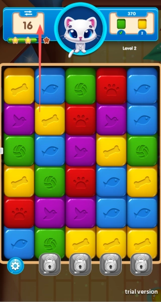 请留意左上角显示的剩余步数,妥善规划每一步操作,保证在规定步数里达成关卡目标。