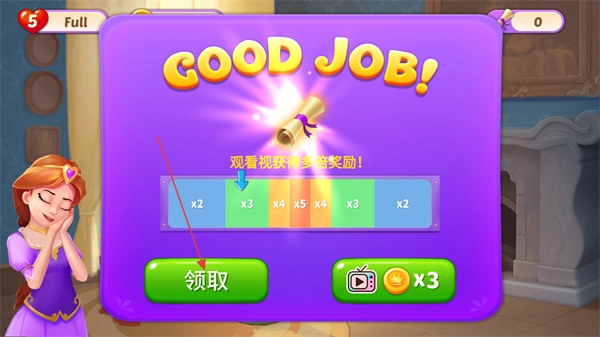 关卡完成后,点击绿色领取按钮直接获取奖励。
