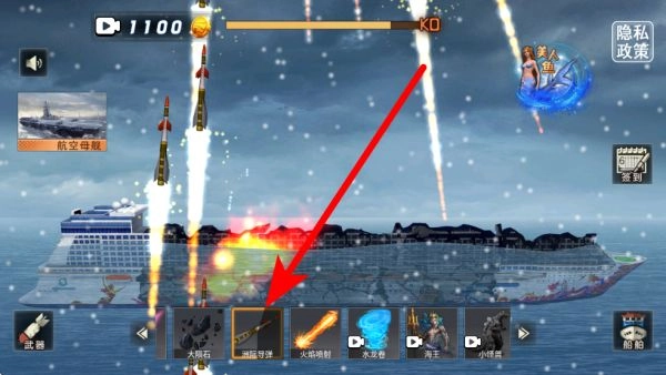 洲际导弹同样是威力强劲的武器之一,点击选中该武器并进行释放,可对目标战舰造成巨额伤害,从而加速战斗胜利的进程。