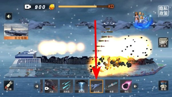 你也可以选择战斗机武器,点击使用后,战斗机会对目标战舰发起攻击,带来可观的打击效果,帮助削弱敌方战舰。