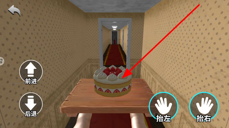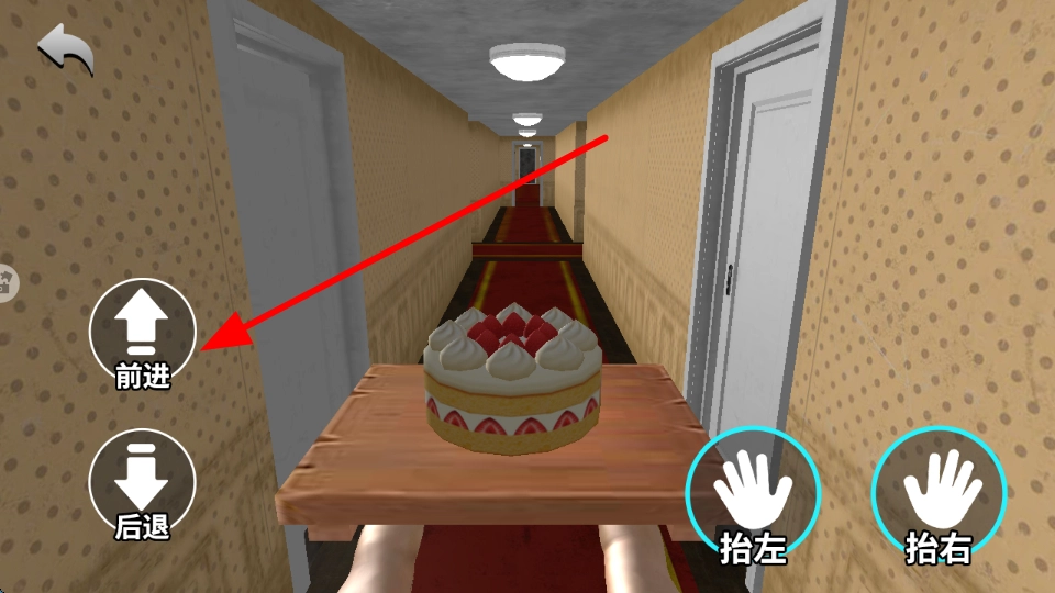 点击左侧的前进按钮,角色就会向前移动;点击后退按钮,角色则会向后移动,通过这种方式来调整在走廊里的位置。