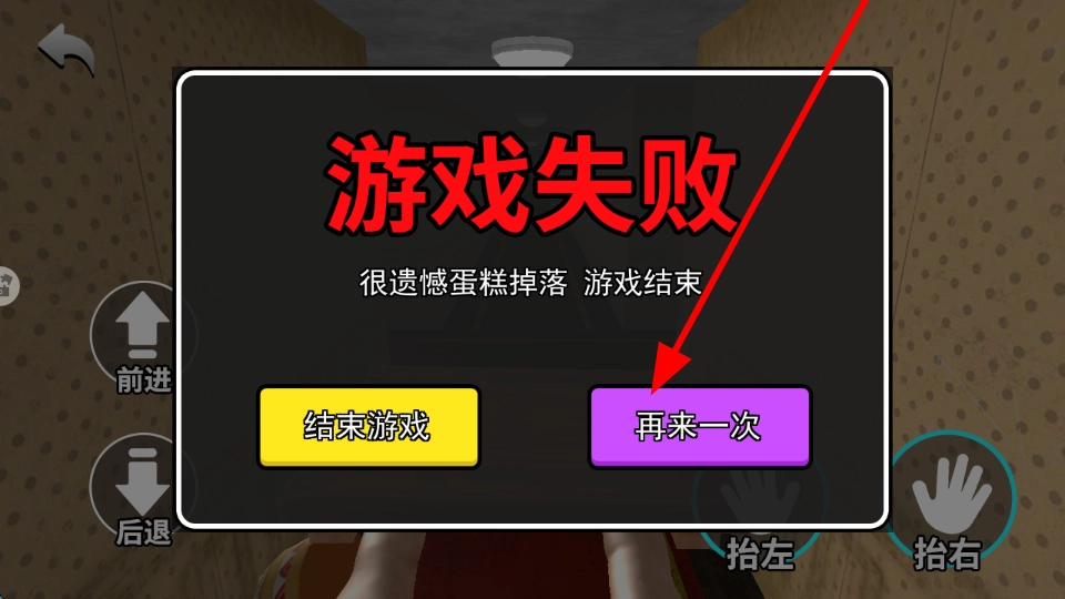 失败后可以重新开始,如果蛋糕掉落引发游戏失败,只需点击“再来一次”按钮,就能重新开启游戏,再次挑战成功运送蛋糕的任务。