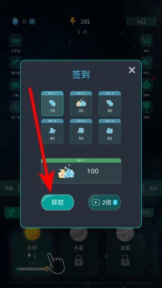 进入游戏后,点击签到界面的获取按钮即可领取每日签到奖励。随着签到天数的增加,奖励会愈发丰厚,这些奖励能为后续的探索提供资源支持。