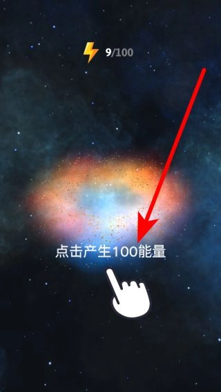 在游戏主界面,点击指定区域即可产生能量;当能量积累到足够数量时,就能用来解锁新星系、升级相关设施,从而推动宇宙探索的进程。