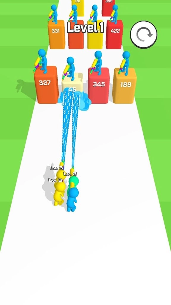 游戏的核心玩法是用水枪射击摧毁敌方防御塔,同时收集金币来壮大自己的战斗队伍。随着关卡的推进,你会碰到各式各样富有创意的障碍物和机关陷阱。游戏专门设计了帮派合并系统,你的队伍规模越大,产生的破坏力就越惊人。每个关卡都设有三星评价机制,若想达成完美通关,就得合理运用战术策略。