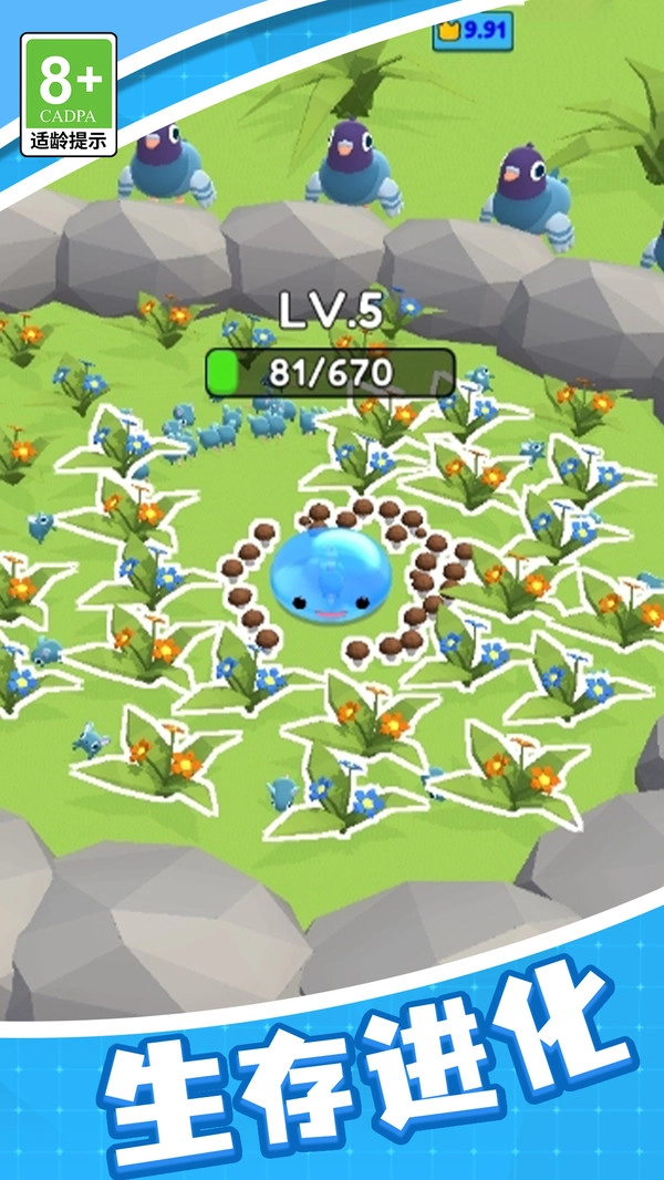渐进式成长系统:史莱姆能够通过吞噬与升级逐步变得更大更强,其外观也会相应发生变化,让玩家可以见证角色成长的每一个阶段。