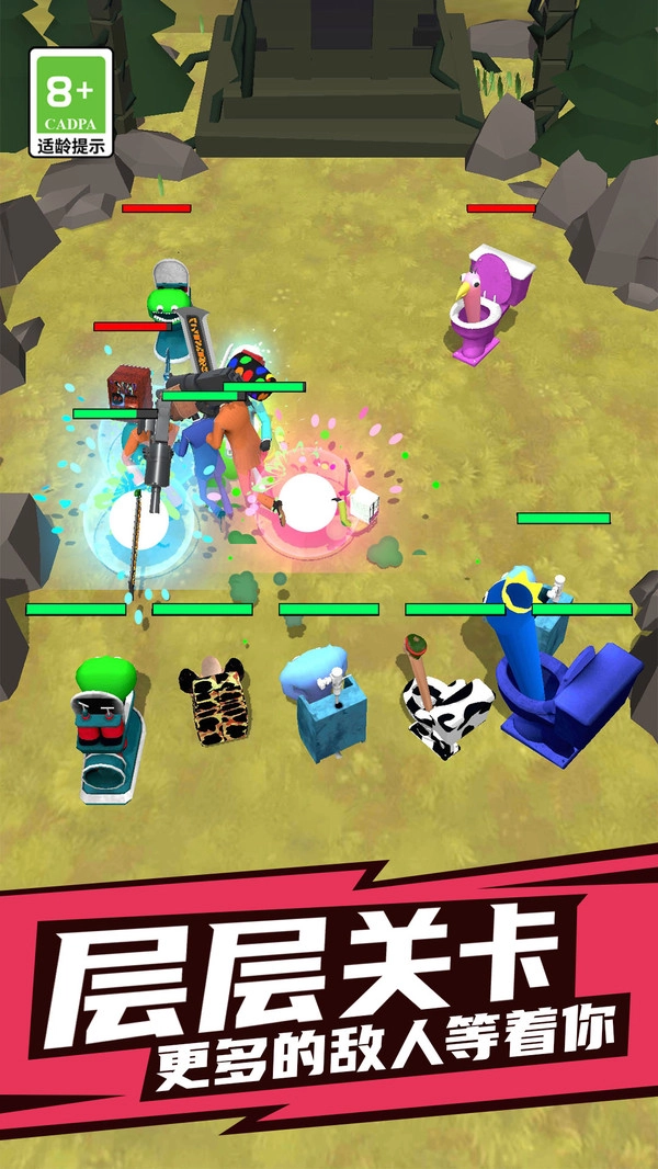 背包武器对决是一款充满魔性乐趣的合成进化类冒险游戏。玩家可以通过角色合成解锁全新战斗形态,搭配属性成长系统与洗脑级背景音乐,体验别具一格的减压快感。在背包武器对决里面,你将指挥千奇百怪的角色展开爆笑对决,每一次进化都能带来意想不到的战术组合。