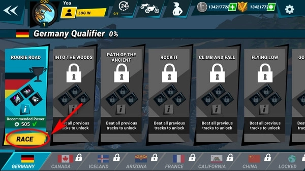 2、接着挑选比赛赛道,之后按下RACE键就能开始匹配对手了。