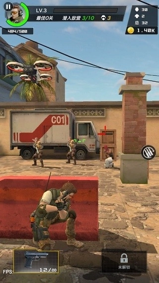 游戏里的玩法简单到了极点,玩家得在敌人现身前找好藏身之处,等敌人出现后,就操控画面里的屏幕长按来瞄准射击,只有这样才能轻松通关。