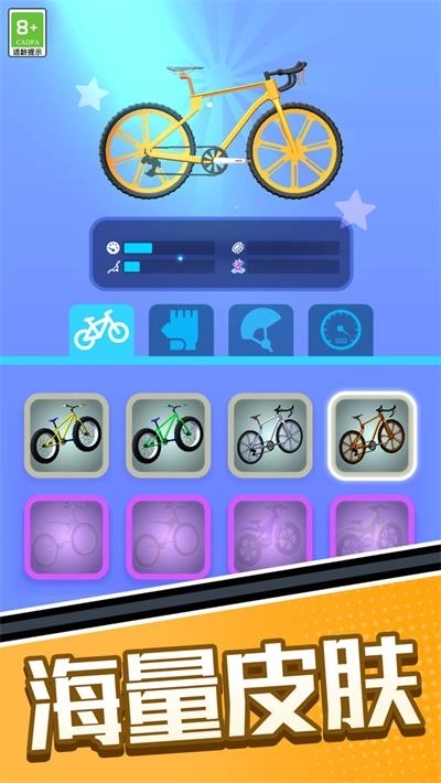 3)多样的自行车皮肤可供挑选,助你的爱车彰显别样个性。
