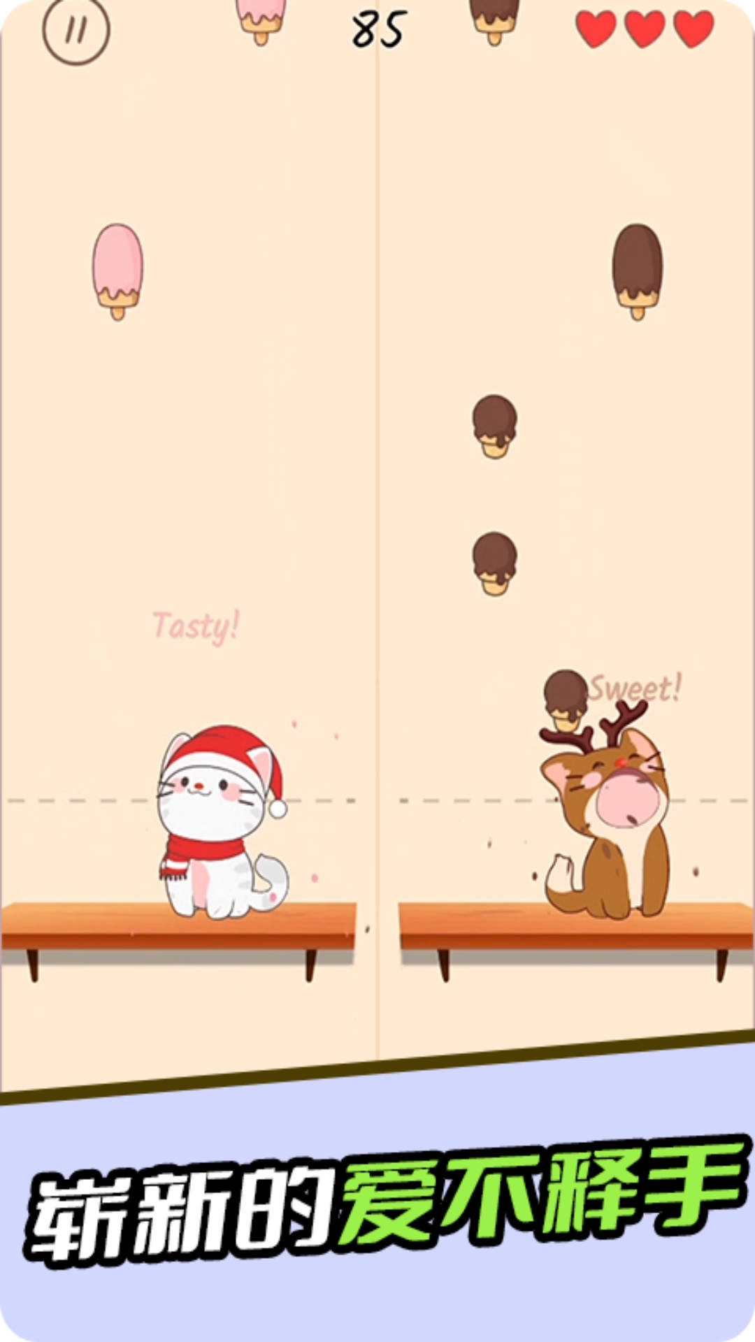1、要在游戏里操控一只小猫咪,挥动剑去斩断从屏幕上方掉落的猫咪们。