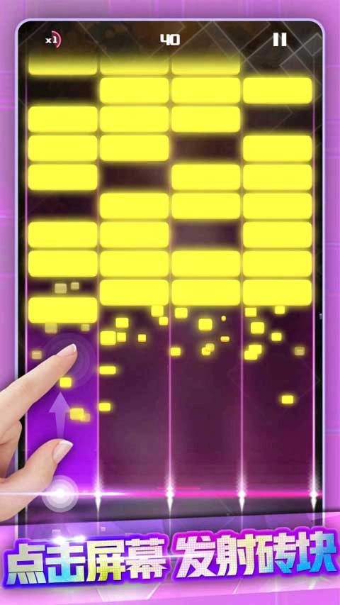 游戏的玩法是点击屏幕,把一行里有空缺的位置补上砖块,等砖块补全后就会自动消除,每消除一行砖块就能得到分数。