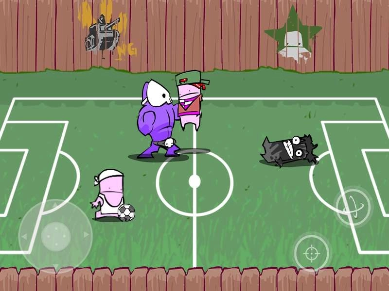 4、接下来是4个小豆丁在踢足球,千万别碰球!会被铲倒的!这时候用一次冲撞就能解决掉这4个小豆丁,不一定非要去拿球。