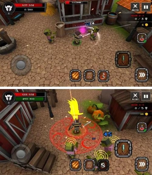 打击感还是不错的,当面对一群方块脸的时候,建议大家可以逮一个先打死,一个个去解决,不然掉血很快。
