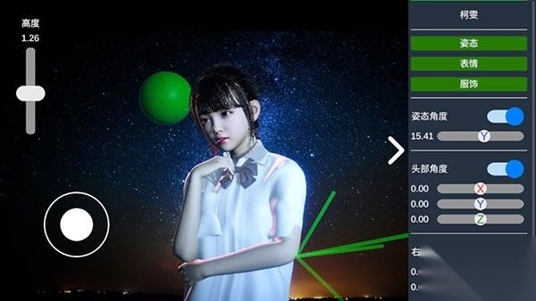 1、启动应用后,界面右侧设有参数调节菜单,左上角支持调整拍摄角度。