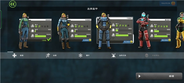 3、接着挑选盔甲,这里面有各式各样的盔甲可供自主选择,每套盔甲的属性都存在差异,像防御力、速度等方面都各不相同。