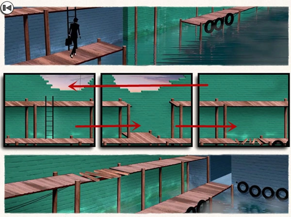 3、游戏中采用了别具一格的分镜拼图机制,可将所有场景拆解为众多画面。
