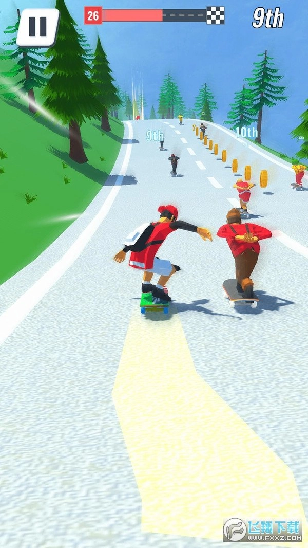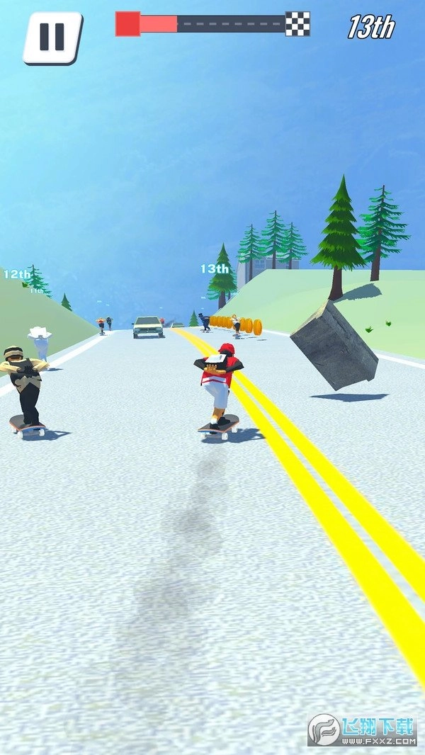 2、运用各类有趣的技巧,能够避开冲刺过程中的障碍,让你尽可能长时间地在滑板上滑行。