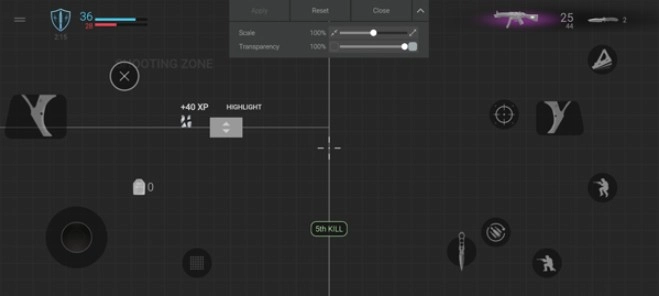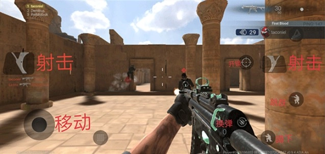 2、正式进入对局后,通过左侧的摇杆进行移动,其他功能键图中也都一一标识了。
