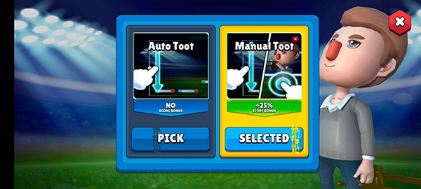 2、游戏内提供两种操作方式供玩家选择,其中【Auto Toot】是自动模式,此模式支持单手操作,玩家仅需控制音符的音高,难度相对较低;【Manual Toot】为手动模式,需要双手配合操作,一只手负责控制音符的音高,另一只手则通过手指点击来模拟吹气动作,玩家可根据自身喜好自由选择。