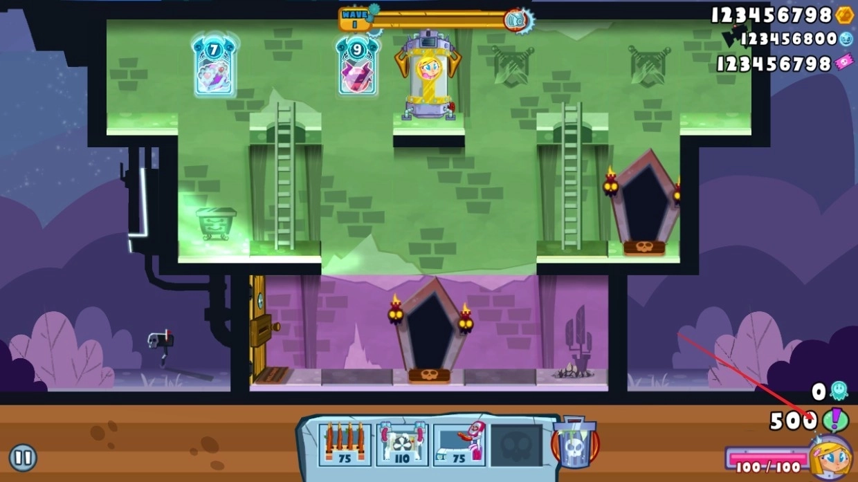 5、尖叫室现在被装甲保护,并且有了生命值条。如果公主被移除,游戏将被告终失败。