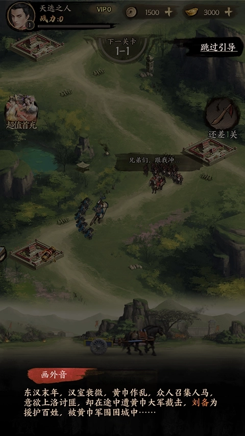 1.进入游戏后会经历一段东汉末年剧情,可以选择跳过。