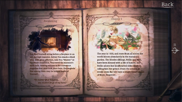 《海市蜃楼之馆》(The House in Fata Morgana)是一款融合哥特美学的西洋浪漫悬疑类AVG文字游戏。玩家将化身主角,在一座陌生豪宅中苏醒,却发现自己丧失了所有记忆。此时,一位神秘女仆会引领你穿梭时空,回溯这座宅邸在不同时代发生的四段悲剧往事——每段故事都对应着独特的时代背景,字里行间交织着爱、失落、背叛与绝望的复杂情感。 游戏进程中,玩家需通过文本选择解锁分支剧情,逐步揭开故事全貌;同时可收集散落在宅邸中的“遗物”,每件物品都凝结着某个瞬间的深刻创伤。玩家需要以“物质性接触”为媒介重构破碎记忆,最终将女性的创伤记忆转化为可触碰的叙事载体,为跨越时空的疗愈对话创造可能。