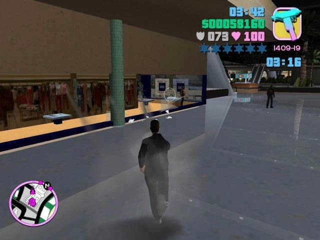 游戏里藏着不少彩蛋:比如浴室墙壁上若隐若现的斑驳血迹,还有藏在里面的电锯,这处设计致敬了电影《疤面煞星》中用电锯折磨主角的经典情节;当《侠盗猎车手:罪恶都市》的玩家达成五星级通缉时,会有FBI探员驾驶着外形酷似Ferrari Testarossa的车辆展开追捕,而这些探员的形象,则是参照了《迈阿密风云》里Don Johnson与Philip Michael Thomas的模样来塑造的;另外,玩家完成所有任务后,主角还能获得一件印有文字的T恤衫。