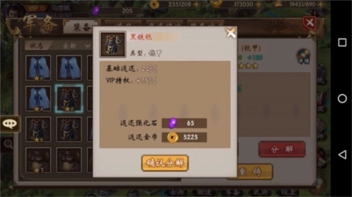 分解装备时,会返还强化该装备所消耗的部分铜币与强化石。