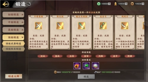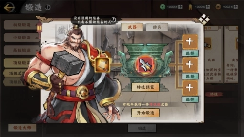 在工坊里,玩家可以通过锻造大师获得红色极品武器和防具。