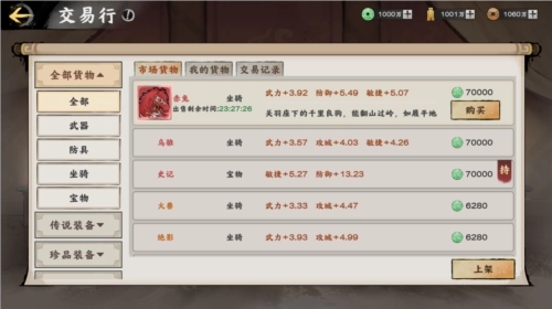 各位将军可能都遇到过这样一个问题,就是自己辛辛苦苦获得了很厉害的装备,但是和自己的武将并不是很适配。用吧,效果一般,不用吧,一直放着心里很不舒服。所以我们在游戏中加入了“交易行”的功能,支持玩家自由交易,这样就不会再出现极品装备烂在手里也毫无用处的情况啦。