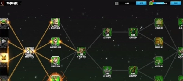 学院的科技体系分为经济科技与军事科技两大板块。前期开荒阶段,建议优先将建筑学的一、二级全部点满,随后优先提升军事指导的一、二级,以及体能和调息这两项科技。这样做的目的是帮助我们在前期获取更多体力,并加快体力恢复速度,从而在攻打野蛮人时能获得更丰厚的经验收益。 在着手研究军事科技之前,需要先把学士研讨的一、二级点满。而在研究T3和T4级科技时,则要围绕自己的主力武将和对应的兵种方向展开。例如,若选择人族玩法师进行开荒,那么前期T4科技就应优先解锁法师相关的内容——简单来说,前期科技的发展方向是与主力武将的定位紧密绑定的。