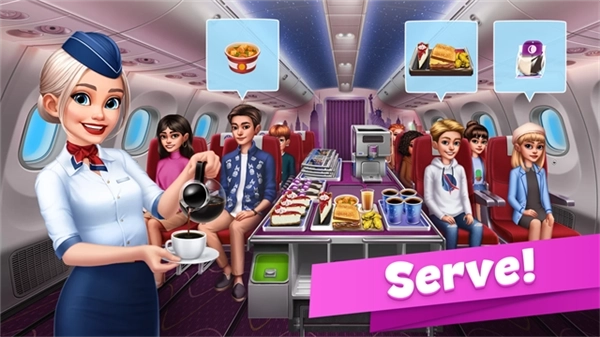 1、制作美味的餐食与甜点,并在这款免费且极易让人沉浸其中的时间管理类烹饪游戏里,把它们提供给商业航班。