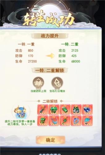 玩家完成转生后,战力将得到大幅提升!不仅能解锁技能、宝石等养成系统的上限,还能突破装备穿戴限制,开启更多全新玩法!