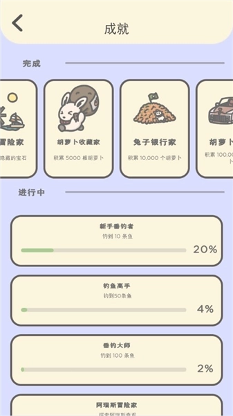 2、月兔冒险2》的画风十分治愈:游戏采用柔和的主色调,没有过于鲜艳或饱和的色彩,整体视觉效果让人感到舒适。搭配休闲放置的玩法,玩家能在游戏中充分放松身心,沉浸式体验月兔的生活日常。