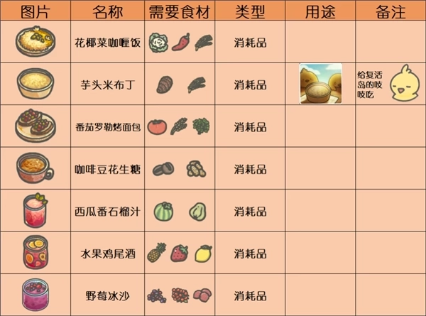 4、杨桃树莓冰沙、南瓜糯米团、花生茄子咖喱、玉米栗子粥、菠萝杨桃汁、咖啡包、熟制葡萄树莓果酱。