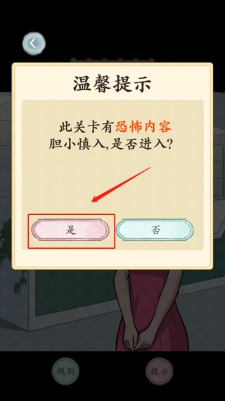 1、玩家进入游戏时会看到温馨提示,告知游戏内容略带恐怖元素,提醒胆小的玩家谨慎体验
