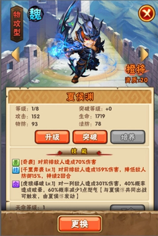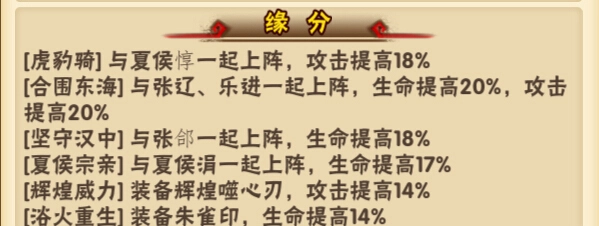 虎豹骑:若与夏侯惇一同上阵,攻击可提升18%