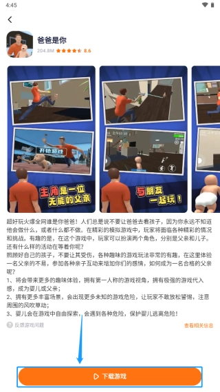 2、点击顶部的搜索框,输入你想玩的游戏名称,比如“爸爸是你”,然后点击打开按钮。