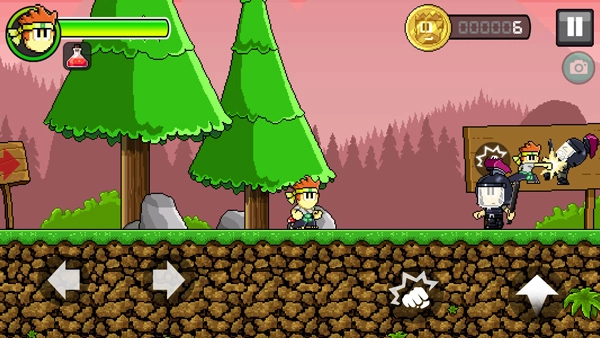 4、稍作等待让游戏加载完成,游戏界面左侧的两个按钮用于控制角色左右移动,右侧的按钮则分别对应攻击和跳跃功能。