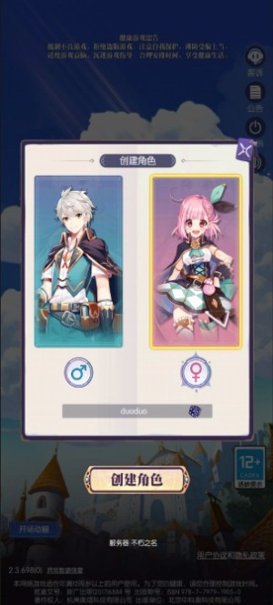 3、进入游戏后,我们选择一个角色,取个昵称。