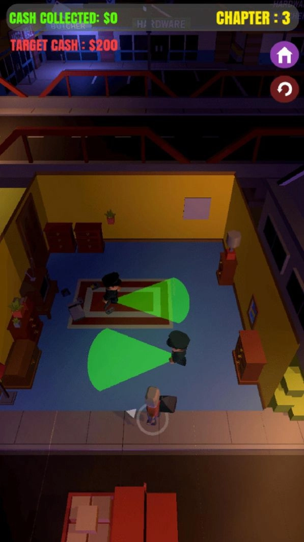 1.在智能小偷游戏中,昏暗的环境非常大气,可以偷很多东西