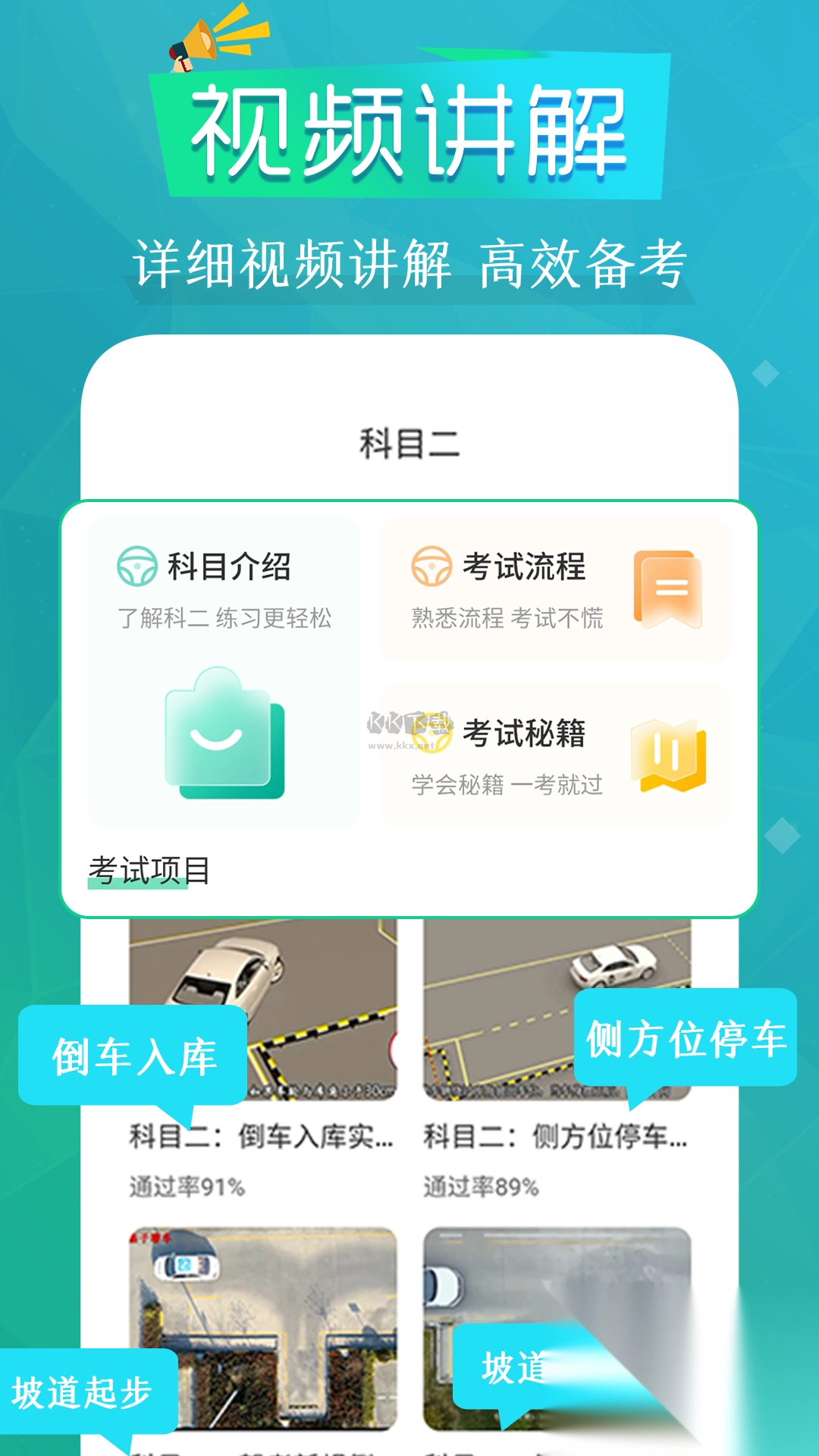 对科目二小路考、科三大路考提供教学视频,深入解析过关技巧;