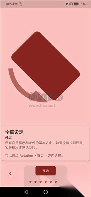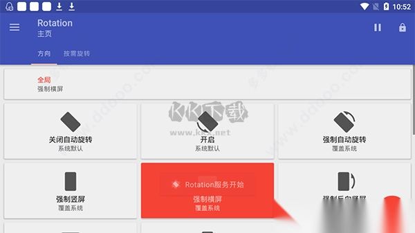 4、比如你要利用Rotation软件进行强制横屏,那么点击下“强制横屏”,再点击“开始”;