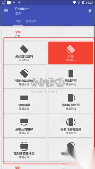 7、另外,其中还支持自定义设置在呼叫、锁定、听歌等多种情况的屏幕方向设置;